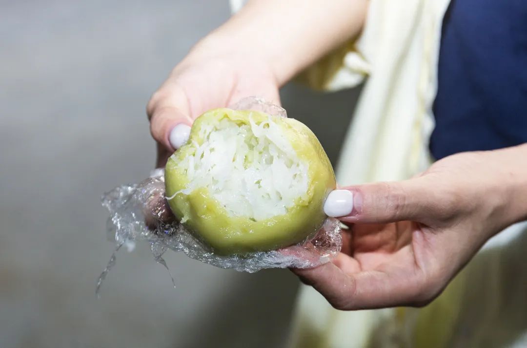 老板娘还给我们推荐了她自己亲手制作的「薏粑」,这是海南人从小吃到大的甜品,五颜六色的,馅料十足,口味多样!但最常见的就是椰丝馅儿的,口感糯糯唧唧,甜口不会腻,一口一个简直太满足