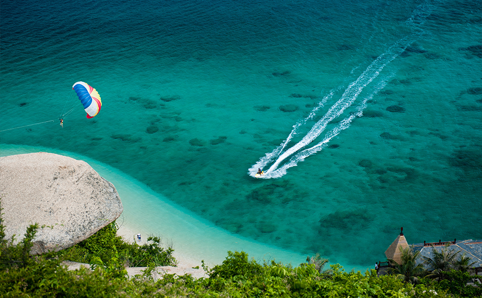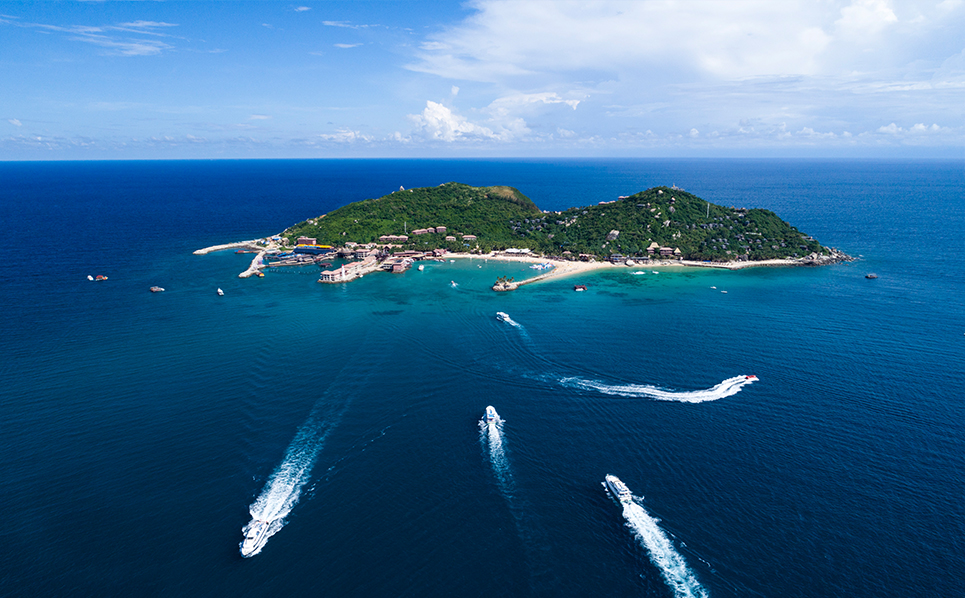 分界洲岛上的牛岭山岭脉线是海南岛东部的南北分界线,岛上北面以平原地型为多,南面以山地为多,这种地理上分界形成了气候上的分界,站在分界洲岛上,经常可以看到牛岭“牛头下雨,牛尾晴”的奇观。分界洲风景优美,海底资源丰富,是游览观光和进行水上活动的理想场所。