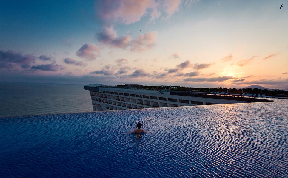 酒店拥有国内最大的1200㎡顶层无边际泳池、顶层日落观赏最佳地带、最浪漫的水上空中求婚平台、独特的70米高空悬挑透明泳池以及三亚湾首家室内恒温泳池。精心设计的莲泰水疗、健身中心以及三亚湾首家500㎡酷得爽儿童中心。设施齐全的1200㎡大型多功能厅及9个会议厅能够满足不同的会议需求。
