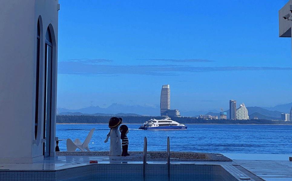 走出房门,可登顶楼阳台看海上落日,如果你想带孩子玩玩海水或是玩玩沙子,出泳池就是美丽的国家海岸线-海棠湾。
