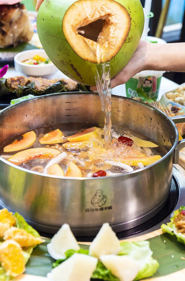 Главное блюдо Саньи - кокосовый куриный суп.Естественная сладость кокоса сочетается с аппетитностью курицы. Суп получается легким и питательным. Он не только сохраняет аромат кокоса, но и сохраняет свежесть курицы по-вэньчански. Каждый кусочек получается многослойным!