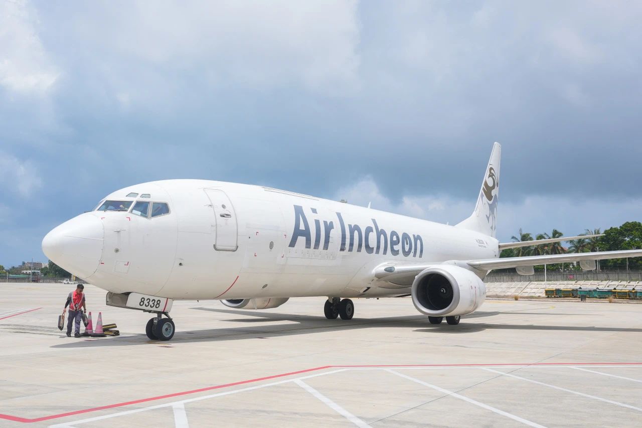 At 11:49 on July 2, the Seoul ⇌Sanya ⇌Singapore cargo flight operated by South Korea’s Incheon Air arrived at Sanya’s Phoenix International Airport. (Photo courtesy of Sanya Phoenix Airport)