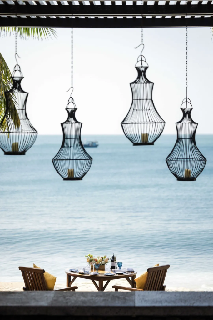 Here, there are no walls—this entirely open-air restaurant immerses guests completely in the embrace of the sea. Designed by renowned firm LTW, the space is artfully woven into the lush landscape envisioned by master designer Bill Bensley.