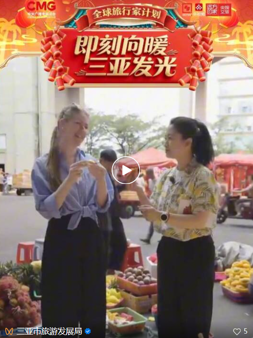 Experience the festive spirit amidst coconut groves, immerse yourself in intangible cultural heritage, and rediscover your rhythm amidst mountains and seas. The “Global Travelers”—Kevin Gu, Valerie Rabbit Lily, Jacob, and Zina—a group of foreign bloggers from the United States, Russia, Italy, and the Czech Republic, delved into the streets and alleys of Sanya, embarking on a marvelous journey of exploration and embracing the Spring Festival in Sanya!