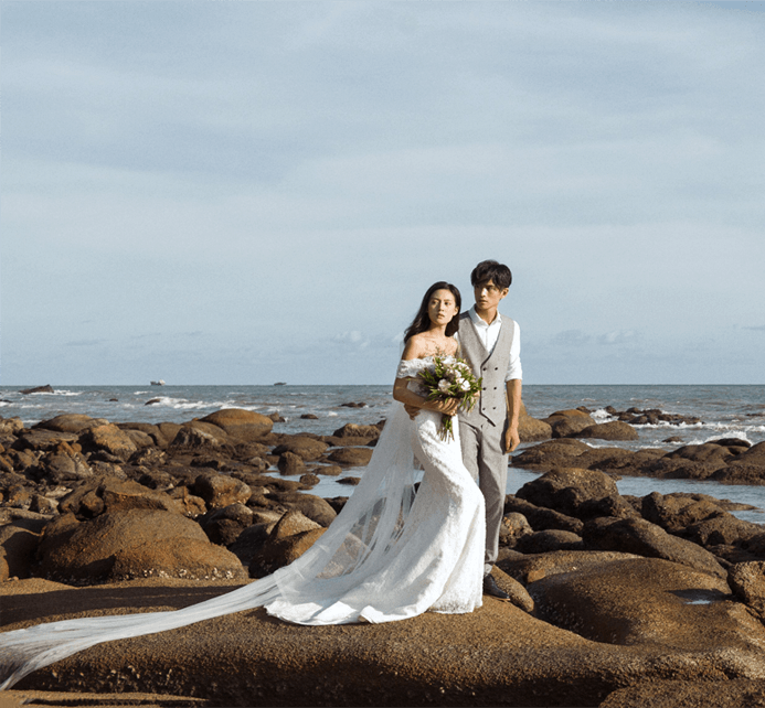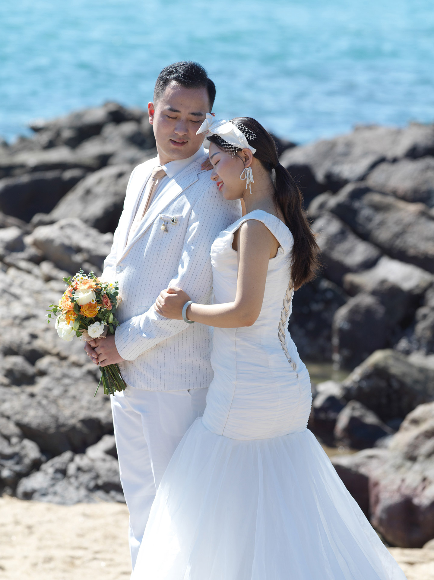 三亚作为我国最干净的海岛之一,碧海蓝天,气候宜人,这里是所有情侣梦想的浪漫之地。三亚拍摄出来的照片海水清澈,白纱衬着蓝天,静静的,给人以春意盎然的清新感,还有椰林、沙滩、礁石、草坪……每年到这里拍婚纱照的新人成千上万对。来三亚吧,让大海见证你们的爱情直到白头到老、海枯石烂。