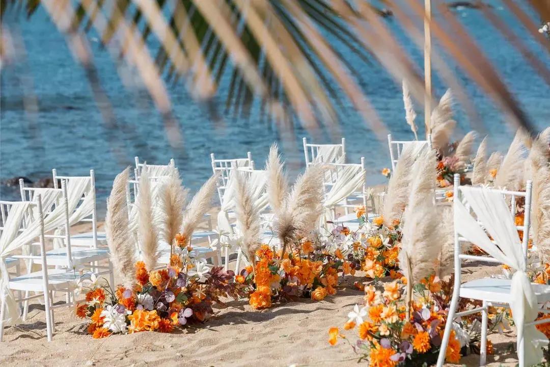清新纯美的草地上,广袤的蓝天大海,抬眼可见,让人不自觉地放空,一缓连日筹备婚礼的紧张情绪。在充满热带自然趣味的椰林草坪,独特的海岛韵味与遮荫效果,可以让宾客体验多一些舒适度;同时,椰林作为天然屏障隔绝游客,也可以增强婚礼的私密性。
