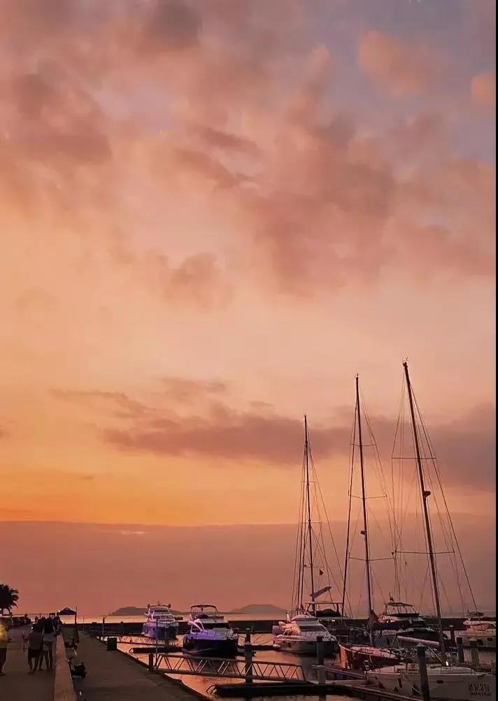 吉庆广场的不远处就是半山半岛帆船港,阳光明媚的海滩、静谧旖旎的热带风光、海岸线边清澈的海水和沁人心脾的海风......这个天然的避风港,美丽又惬意。傍晚的时光,牵着TA的手,漫步在帆船港,看落日余晖晕染整片天空和大海,伴随着谈笑声,此刻万物的美都不及你惊鸿一瞥。