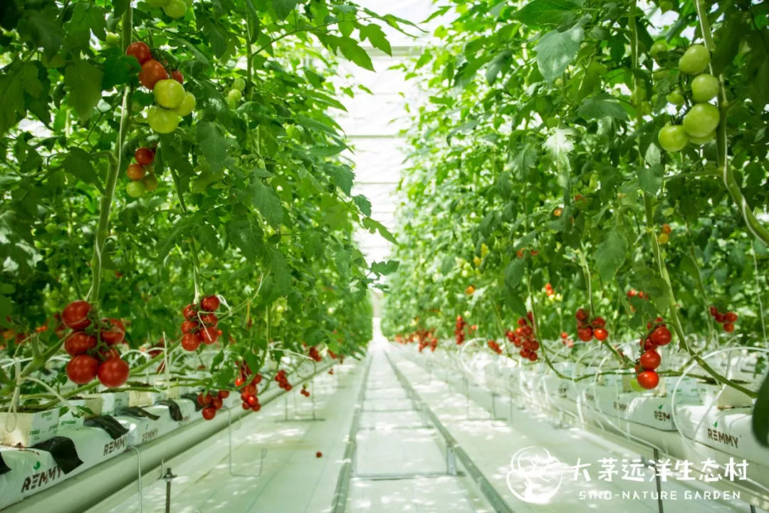 由四栋高科技玻璃温室组成的省级现代农业产业园,引用荷兰技术种植樱桃番茄、月露蜜瓜、沙拉生菜等无公害的高品质果蔬,为游客提供健康、安全的食材。现在正是草莓、蜜瓜、小番茄成熟的季节,一眼望去,颜值超高的大颗草莓布满田野;青翠饱满的月露蜜瓜挂满枝藤。微风吹过,扑鼻而来的是瓜果成熟的香味,农业生态的魅力在这里一览无余。
