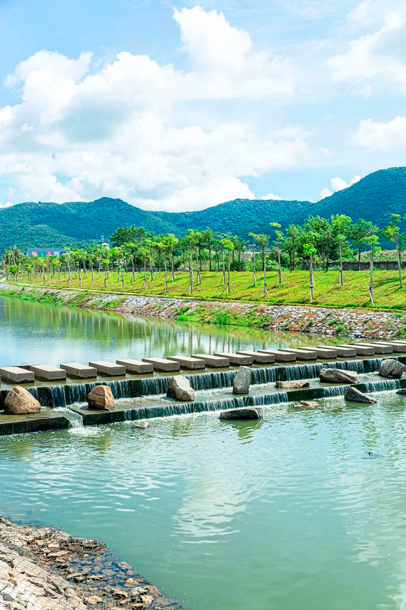 龙江河位于三亚市海棠区境内,河道起点位被酒店、免税商城环抱。自带“流量”的它和云戒桥一起组成了最佳CP,景观一绝。河畅、水净、岸绿,坡岸风光旖旎,河道清澈见底