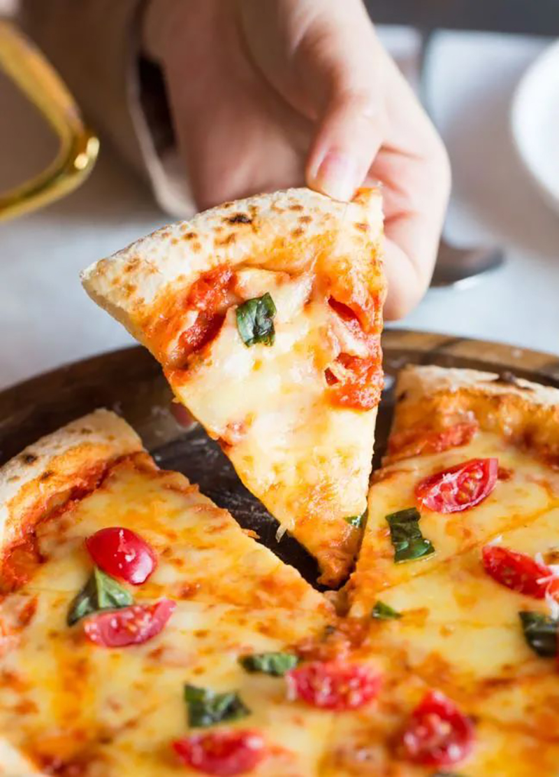 披萨是薄底的,很考验师傅的技术。满满的芝士,咸香混合,让人回味无穷。