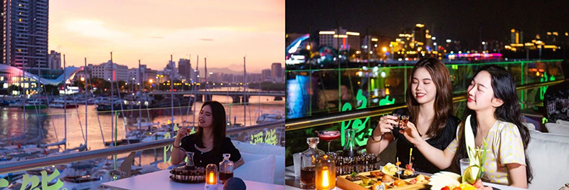 夜幕降临,这里就摇身变成了越夜越嗨的酒吧。除了有情调的环境、美景、音乐,「隐醉Wave」的美酒美食也不可辜负。