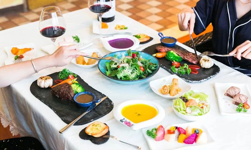 饱满的肉汁混合着牛排的鲜嫩,咬下一口,不要太过瘾!浪漫的落日,配上这一顿法式西餐,是难忘的夜晚,更是好吃又好拍的约会圣地。