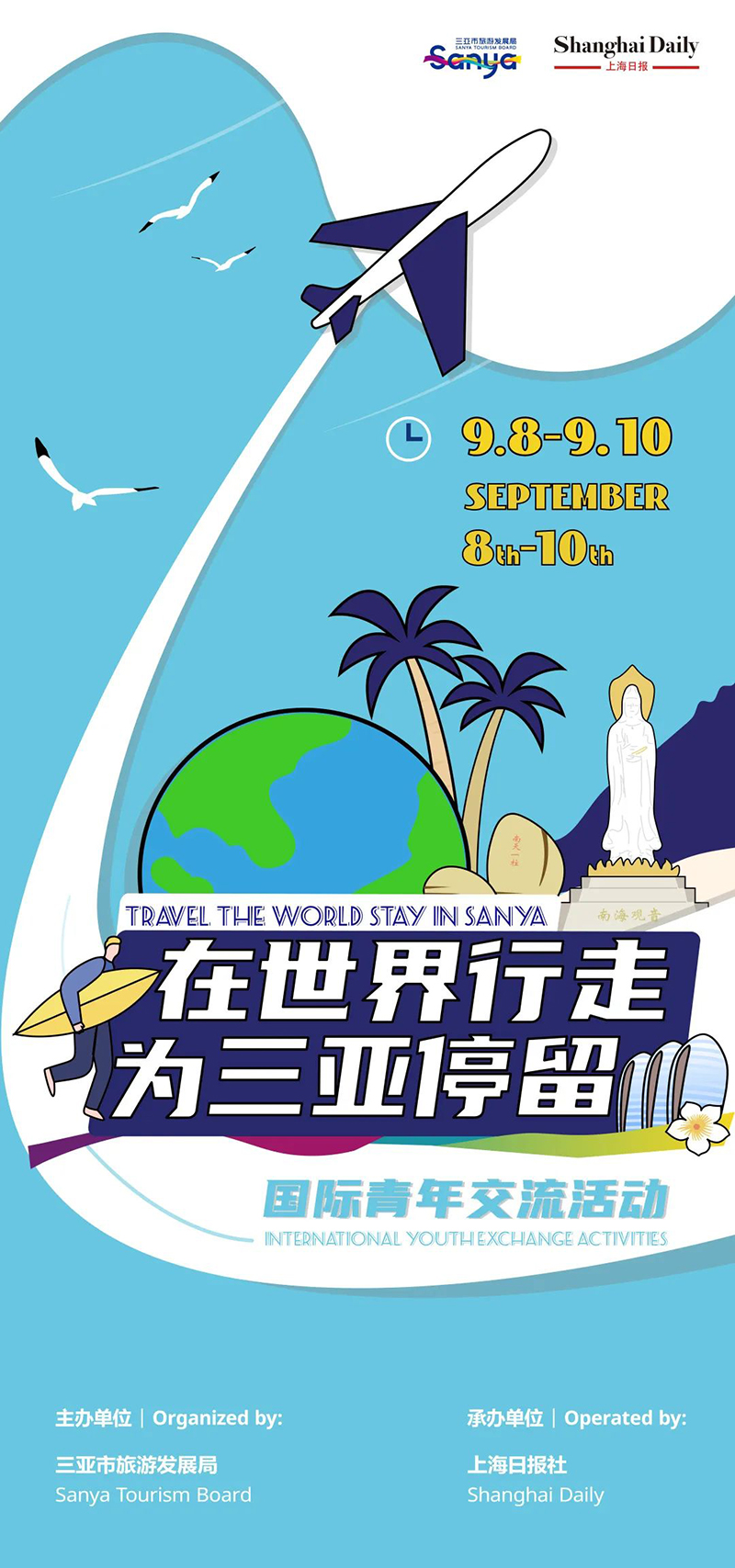 9月8日至9月10日,由三亚市旅游发展局主办,上海日报承办的“在世界行走,为三亚停留”国际交流活动正式亮相,邀请了来自美国、澳大利亚、新西兰等三亚境外主要客源地的20位国际青年来到三亚体验三亚人文风情。
