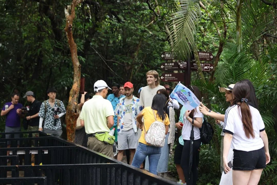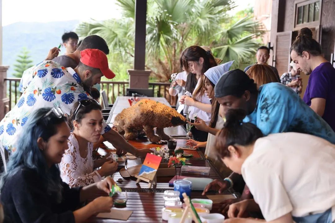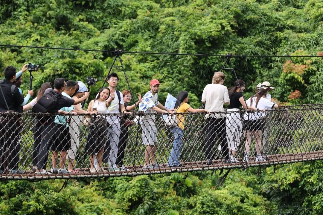 索桥、雨林飞漂、热带雨林景观……来到伴山面海,建筑风格独具热带风情的亚龙湾热带天堂森林公园,国际青年们可太开心啦!在集游览观光和休闲度假功能于一身的天然大氧吧,国际青年们还制作了软胶画、了解生态环保、可持续旅游等相关理念~