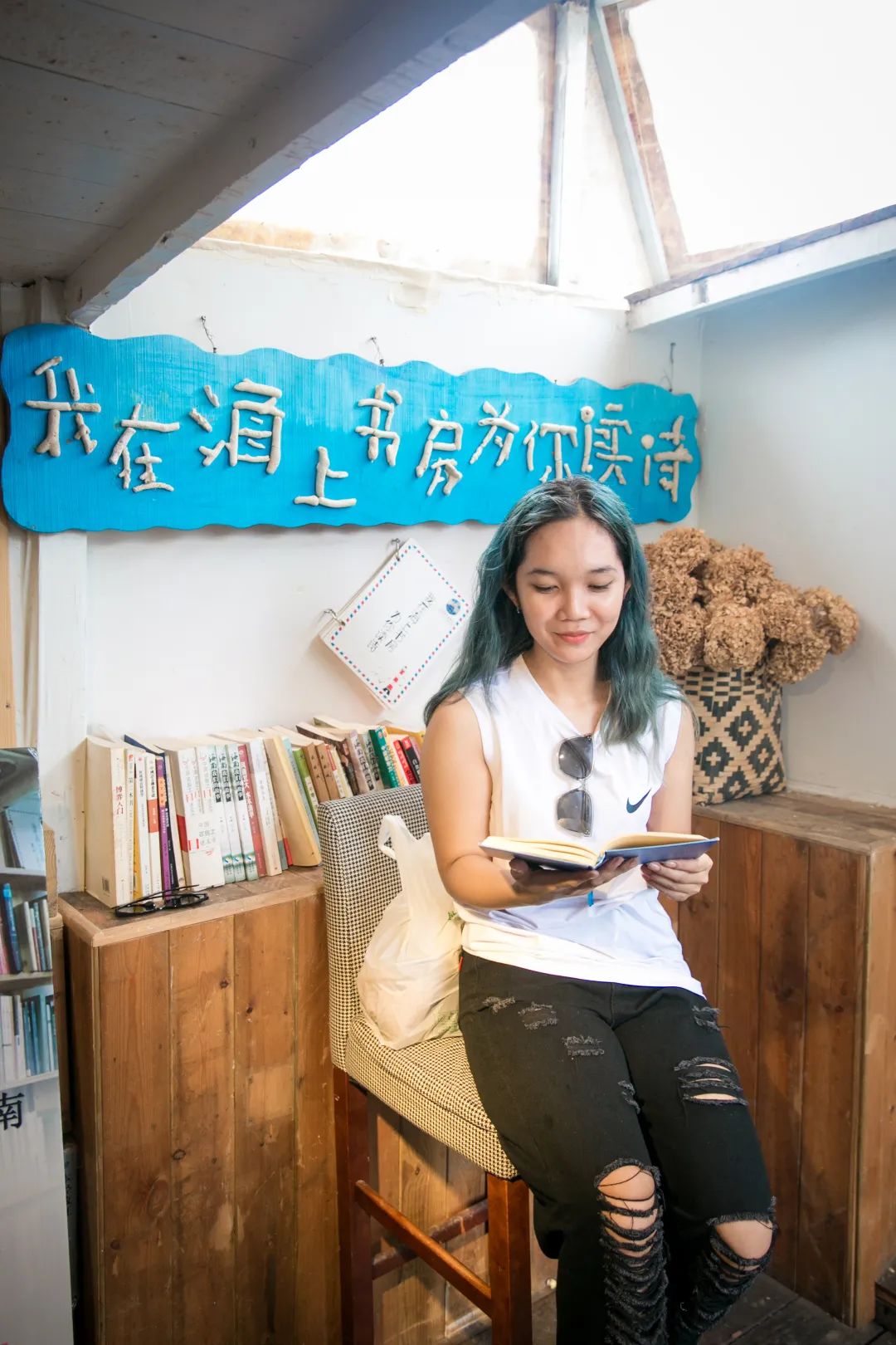 在西岛的海上书屋看书,是国际青年的特别体验之一。坐在海上书屋里读书,总有一种自带摇椅的错觉。