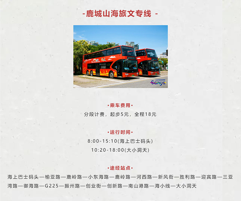 想要快速了解三亚,既想省心、又想省钱,选择“鹿城山海旅文专线”双层观光巴士,一定是个不错的选择!