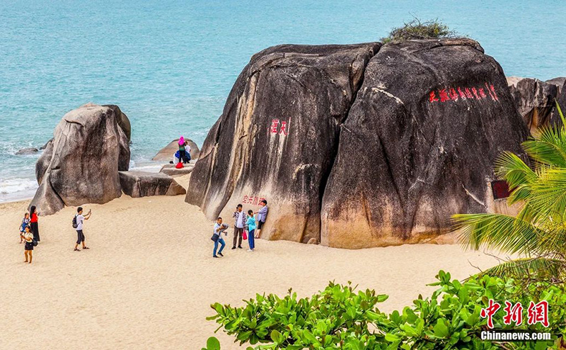 去大东海,三面环山,海湾呈月牙形,被誉为“水暖沙白滩平”的典范。这里,外国游客特别多,国际化氛围浓。