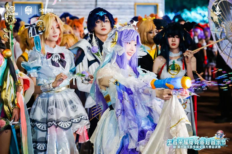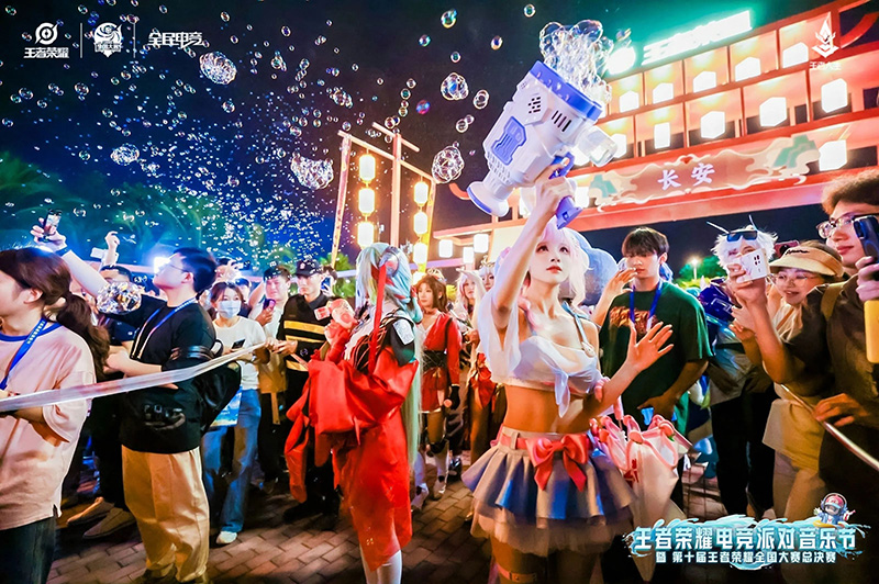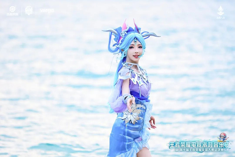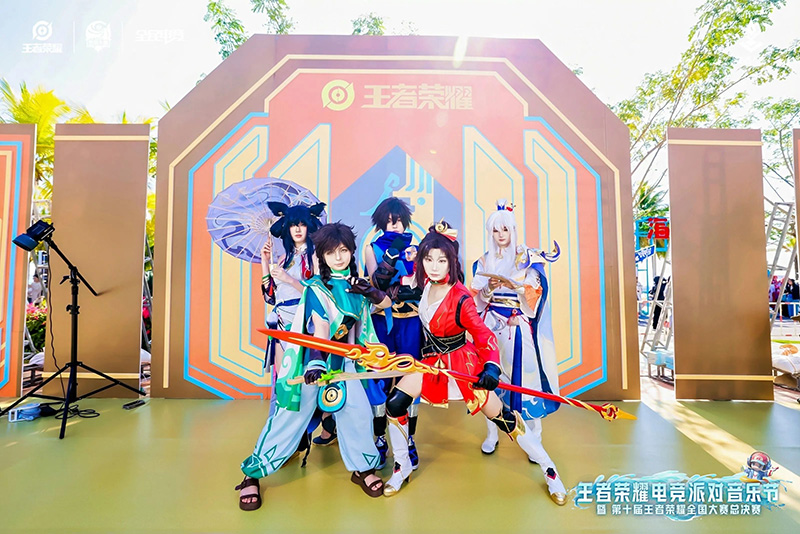 得益于三亚得天独厚的滨海资源,现场除舞台部分外,本届全国大赛还根据游戏场景元素进行线下还原,设置了长安、海都、稷下学院三大主题互动场区。此外,众多的电竞选手、解说嘉宾及Coser也来到现场与观众互动,进一步拉近了电竞与观众之间的距离。