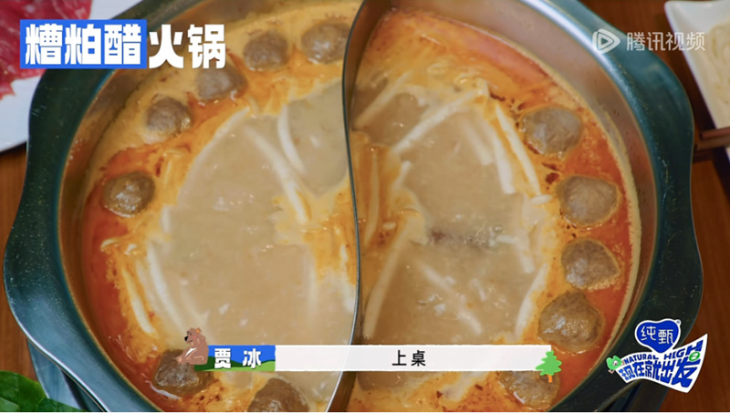 在节目中,出发团成员们还体验了极具特色的糟粕醋火锅,这可是来到三亚必打卡之一!糟粕醋火锅采用酒糟发酵产生的醋酸作为汤料,酸辣可口,带有微微的甜味,非常开胃~