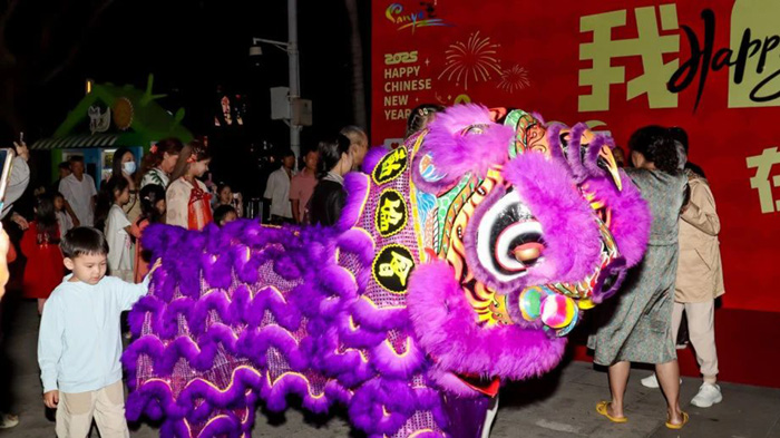 锣鼓声响,焕然一新,舞狮团踏着鼓点与铜锣的节拍跳跃起舞,摸摸狮头,鸿运当头,摸摸狮尾,顺风顺水。