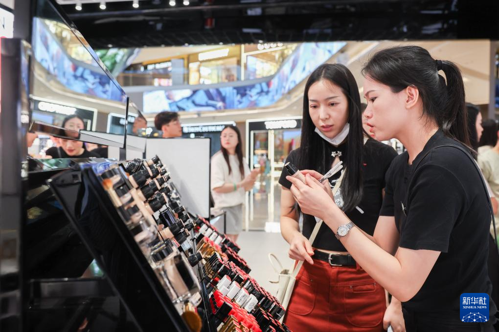 消费者在海南三亚国际免税城选购商品。新华社记者 张丽芸 摄