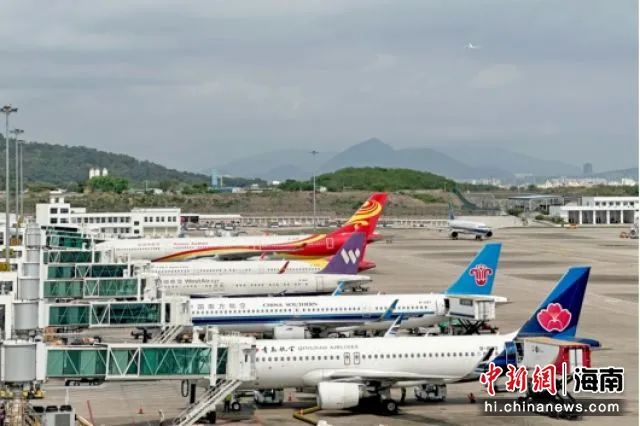 2025年暑期,三亚凤凰国际机场停机坪廊桥机位停满飞机。