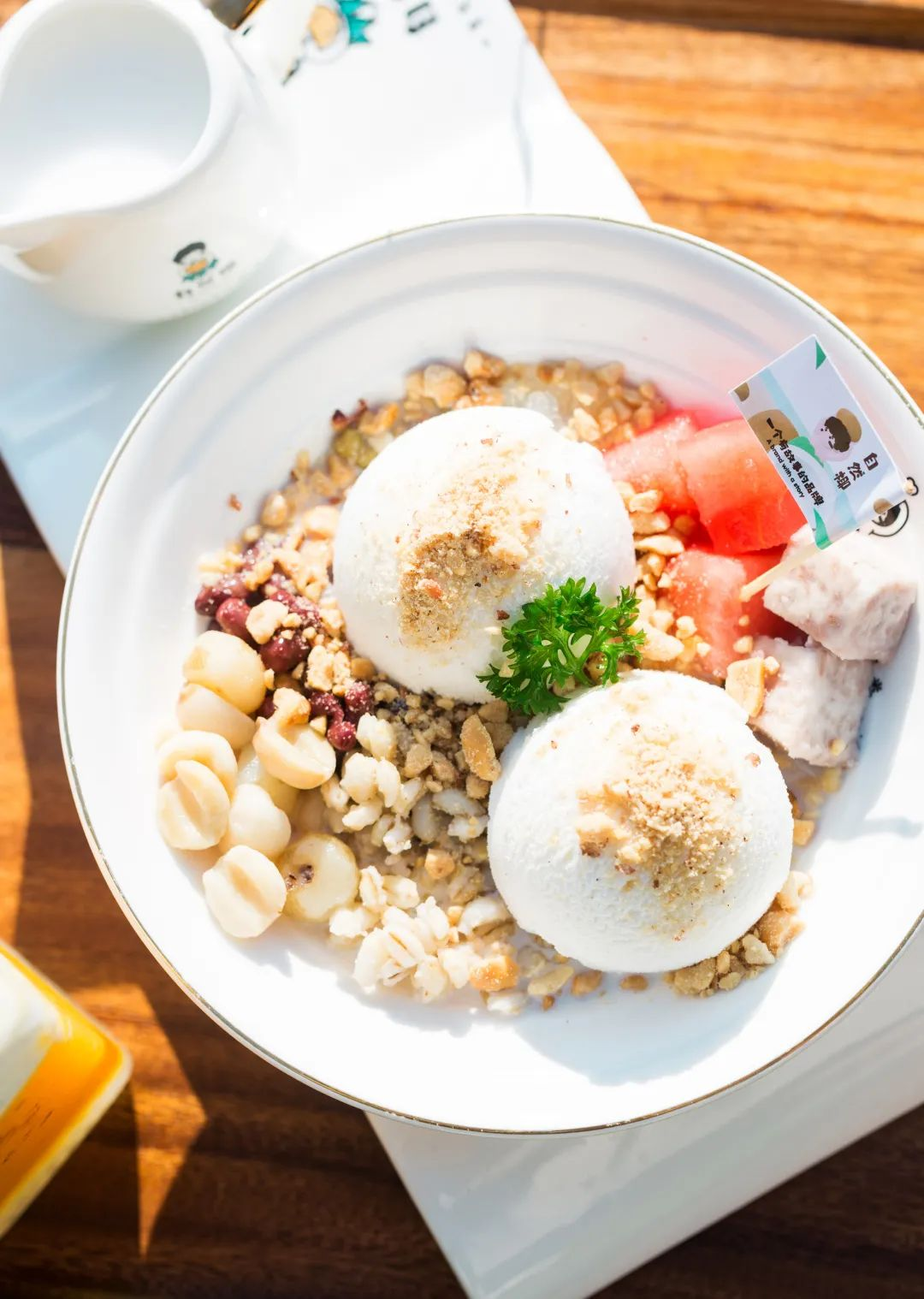At present, coconut milk nourish cool is the most common flavor in Sanya. The rich-flavored coconut milk is made from freshly squeezed ripe coconut meat and is mixed with condensed milk and syrup. Put all the prepared ingredients inside a bowl, top them with rich and sweet coconut milk, and add various ingredients. Every bite assures you a mouthful of coconut flavor and pure happiness! In hot summer, you could also add two scoops of ice cream to the coconut milk nourish cool. The sweetness of ice cream and coconut milk are combined perfectly, allowing you to double your sweetness and coolness.