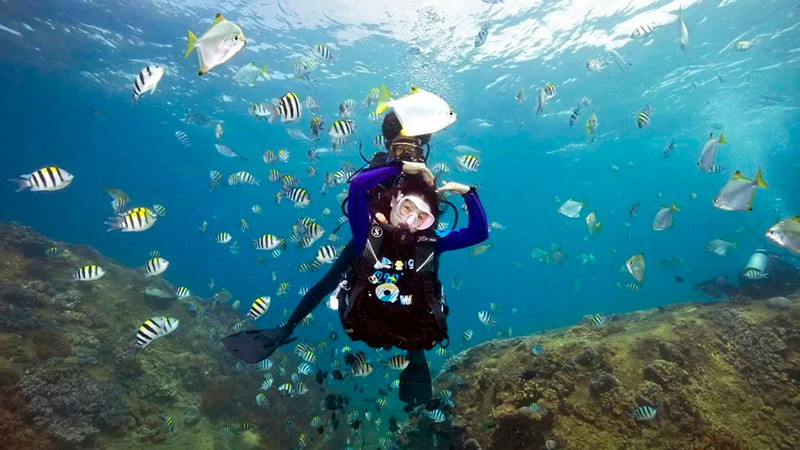 Sanya enjoys the reputation of "the holy land of diving", special diving waters, clear and transparent sea water, showing azure blue beautiful colour, a variety of strange forms, colourful underwater creatures, let a person dazzled.