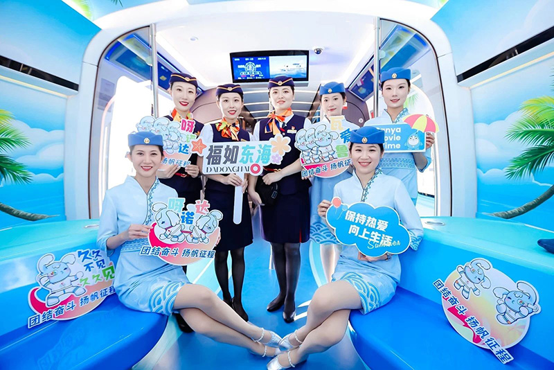 The Sanle Tourism Railway's high-speed train sets feature three distinctive themes, each with a unique meaning, making each train like a business card of Sanya, showcasing the enchanting coastal scenery and tropical charm of Sanya to the fullest.