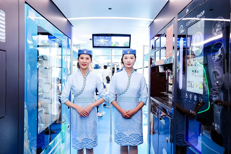 The Sanle Tourism Railway Train, not only skillfully integrates Sanya characteristics into the exterior and interior design, but also innovatively adds facilities such as self-service coffee and milk tea machines, beer machines, and AI photo clocking machines. In addition, the carriages are equipped with desktop wireless charging devices to ensure that your cell phone stays fully charged throughout the journey!