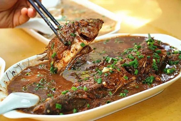 Braised Fish with Lentil Sauce is a traditional and authentic dish originating from Yazhou in Sanya, and it is also a representative of the local culinary culture. Fresh yellow croaker is paired with Yazhou's characteristic lentils and cooked by braising, where the aroma of the lentil sauce perfectly blends with the delicacy of the sea fish, making it incredibly delicious!