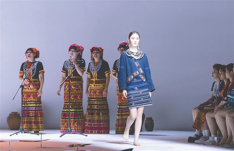 Models wearing Li ethnic costumes walk the runway at the closing ceremony of the 2023 Consumer Expo Fashion Week. Hainan Daily all-media reporter Song Guoqiang photo