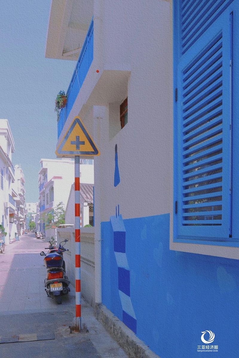 Blue sky, white clouds, and lush greenery, the sky seems like the sea, and white clouds are like floating flowers. Strolling in Tianya Town, time seems to slow down. Entering this century-old fishing village town, what you see is a large area of healing, pure, blue and white residential buildings.