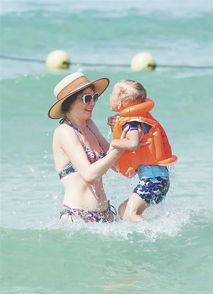 Playing in the sea at Sanya’s Dadonghai Beach (Hainan Daily / Wang Chenglong)