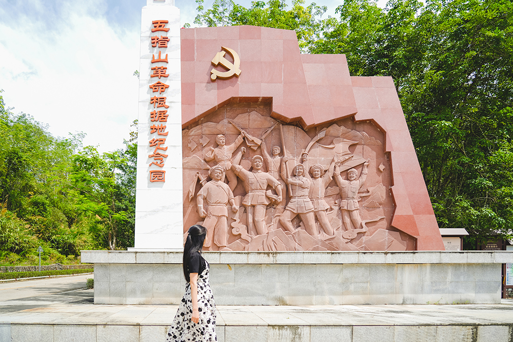 The Wuzhishan Revolutionary Base Memorial Park is located inMaoyang Town, Wuzhishan City, Hainan Province.lt is the site oftheformer Qiongya Column Headquarters. It is listed as one of the 30classic red tourist routes in the country.lt is to receive patrioticeducation and understand Hainan’srevo lutionary struggle and redflag never falls for 23 years, remembering Li Zhenya, Liu Qiuju andother revolutionary martyrs, famous red tourist attractions withgreat achievements.