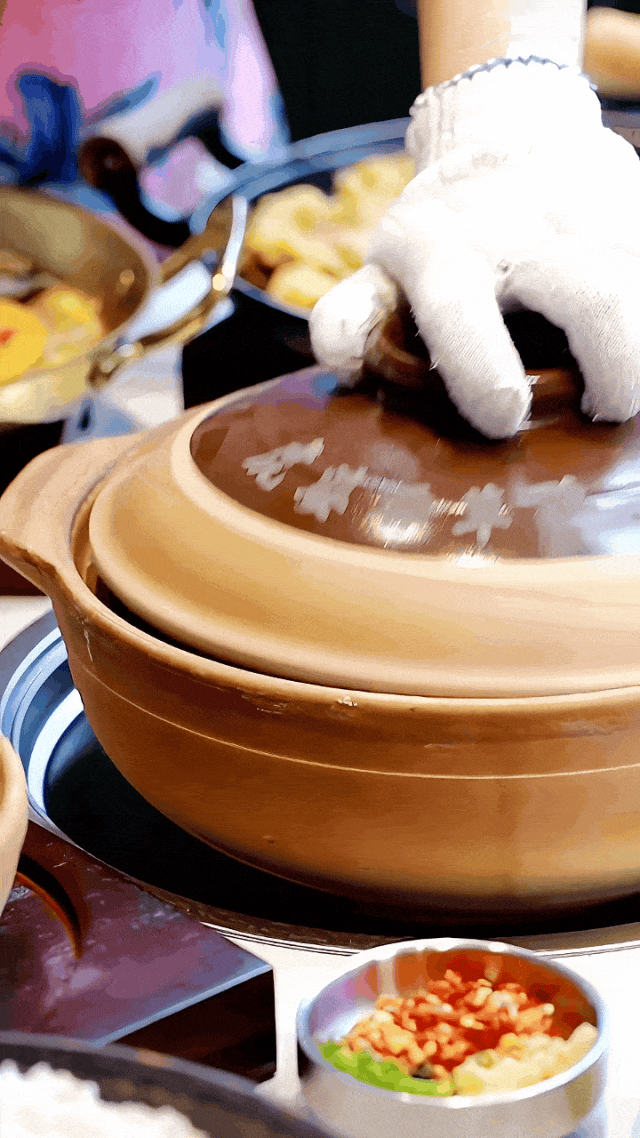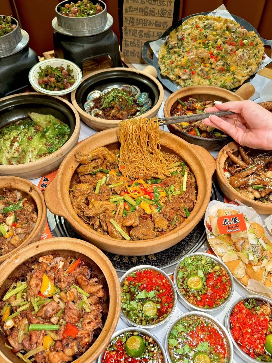 Duck simmers in clay pots as herbs and secret sauces meld. Crisp-skinned yet tender meat swims in velvety broth. Finally, add instant noodles to soak up the rich sauce—carb-loaded bliss with duck!