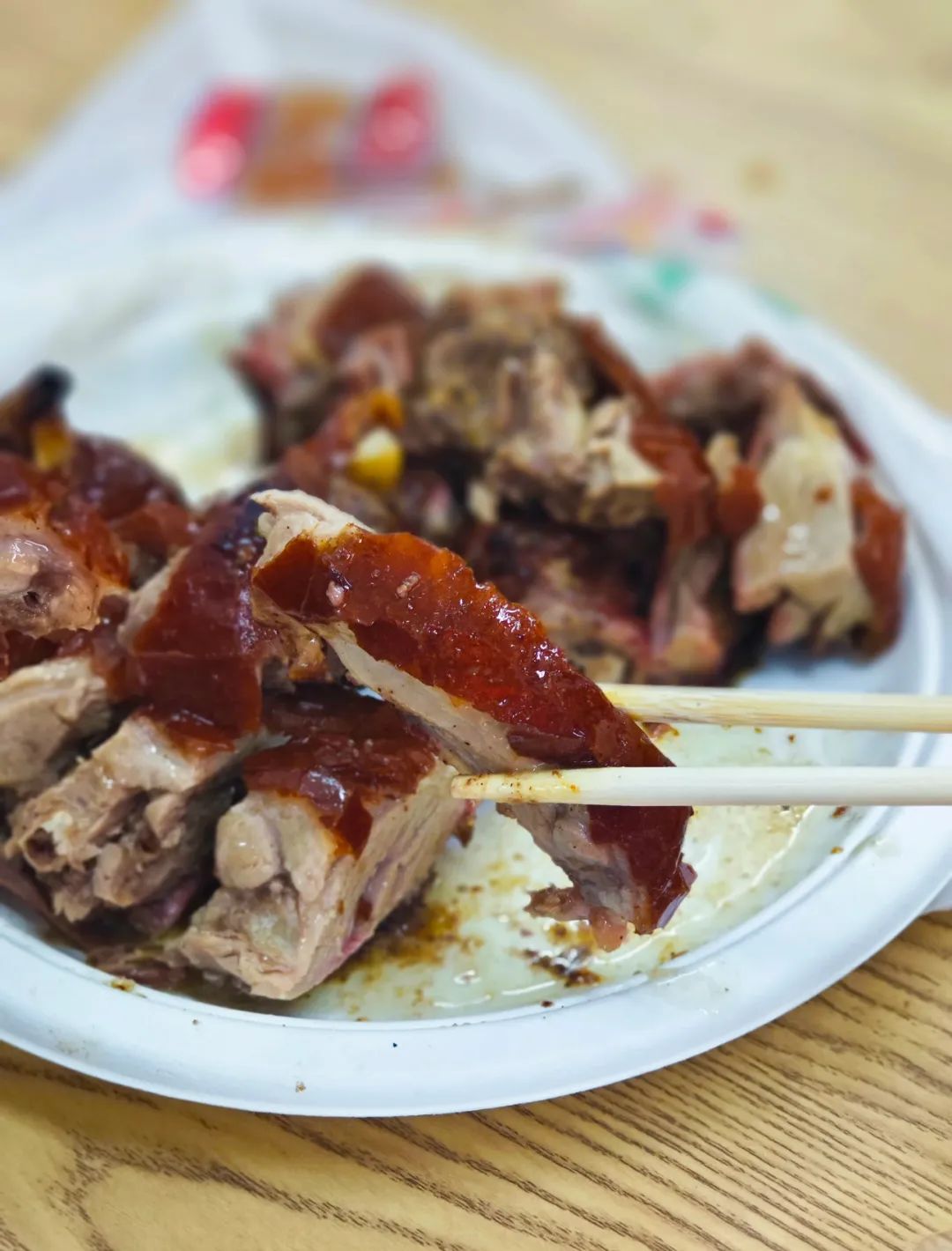 Eat it hot! Freshly roasted duck boasts crackling skin and succulent meat. Dip in plum sauce—tangy, unique, cuts through richness.