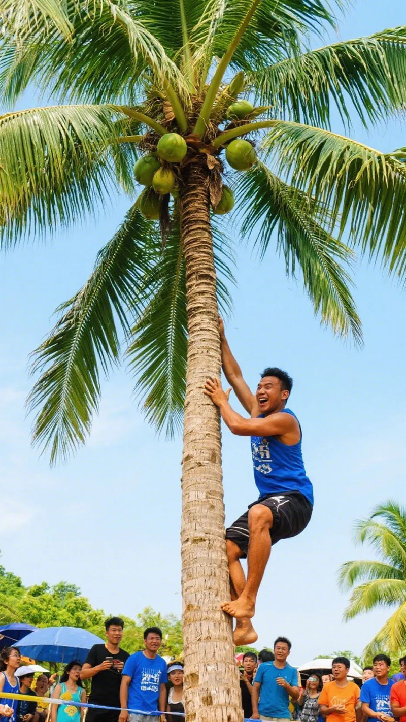 Join wild activities like coconut-drinking contests and coconut-tree climbing challenges!
