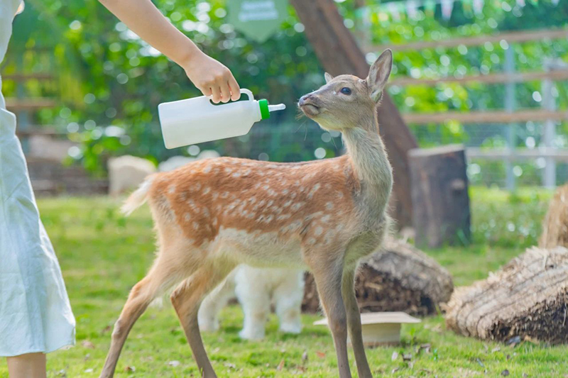 Besides the deer, other small animals in the park are also equally lovely and charming. The fluffy lambs are like lumps of moving cotton candy, bleating and looking extremely cute.