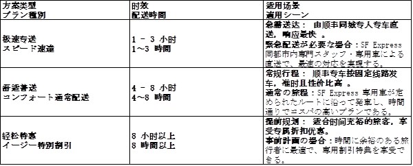 異なる旅程ニーズに応えるため、3 種類の柔軟な配送プランをご提供している。