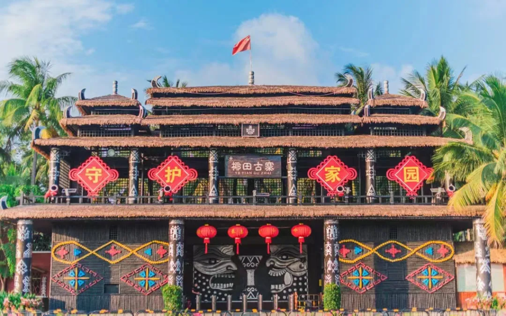 椰子畑古寨 椰子畑古寨(陵水県に位置)の魂は、刻まれた時の痕にある。ここには黎族と苗族の初期生活の鮮明な痕跡が残っている。金字形家屋、船形家屋、高床式家屋 —— それぞれが異なる住まいの知恵と生活様式を物語っている。寨の軒下では今も、黎錦を織る人、頭を垂れて竹細工を作る人の姿が見られる。陶器、銀飾り、刺繍、絞り染め —— これらの工芸は「展示品」ではなく、世代を越えて受け継がれる生活の技なのだ。毎年「三月三祭り」の時期になると、寨から歌声が響き渡り、まるで時光が過去へと戻ったかのようだ。