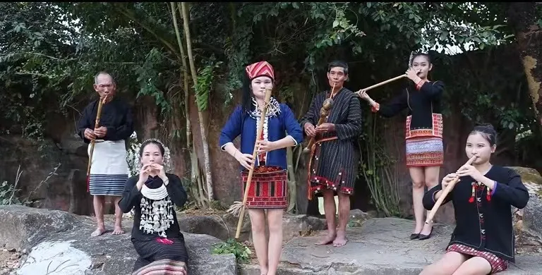 五指山の声・黎族竹木楽器伝承館 この館の魂は、山林の音が集まる場所にある。黎族の伝統楽器は竹、木、皮革を原料として作られ、見た目は簡素だが、その音色は風が谷間を抜けるように澄み切っている。これらの楽器は 2008 年に国家級非物質文化遺産に登録されたが、それは「保護されるために存在する」のではない。山の中では、ずっと楽器が作られ、演奏され、人々に聴かれてきたのだ。伝承館に入れば、奏者の指先から流れるリズムが聞こえ、竹管が息づき、太鼓の皮が震える様子が見られる。美しい音色が空気の中に広がり、言葉を超えて、直接人の心に届く。