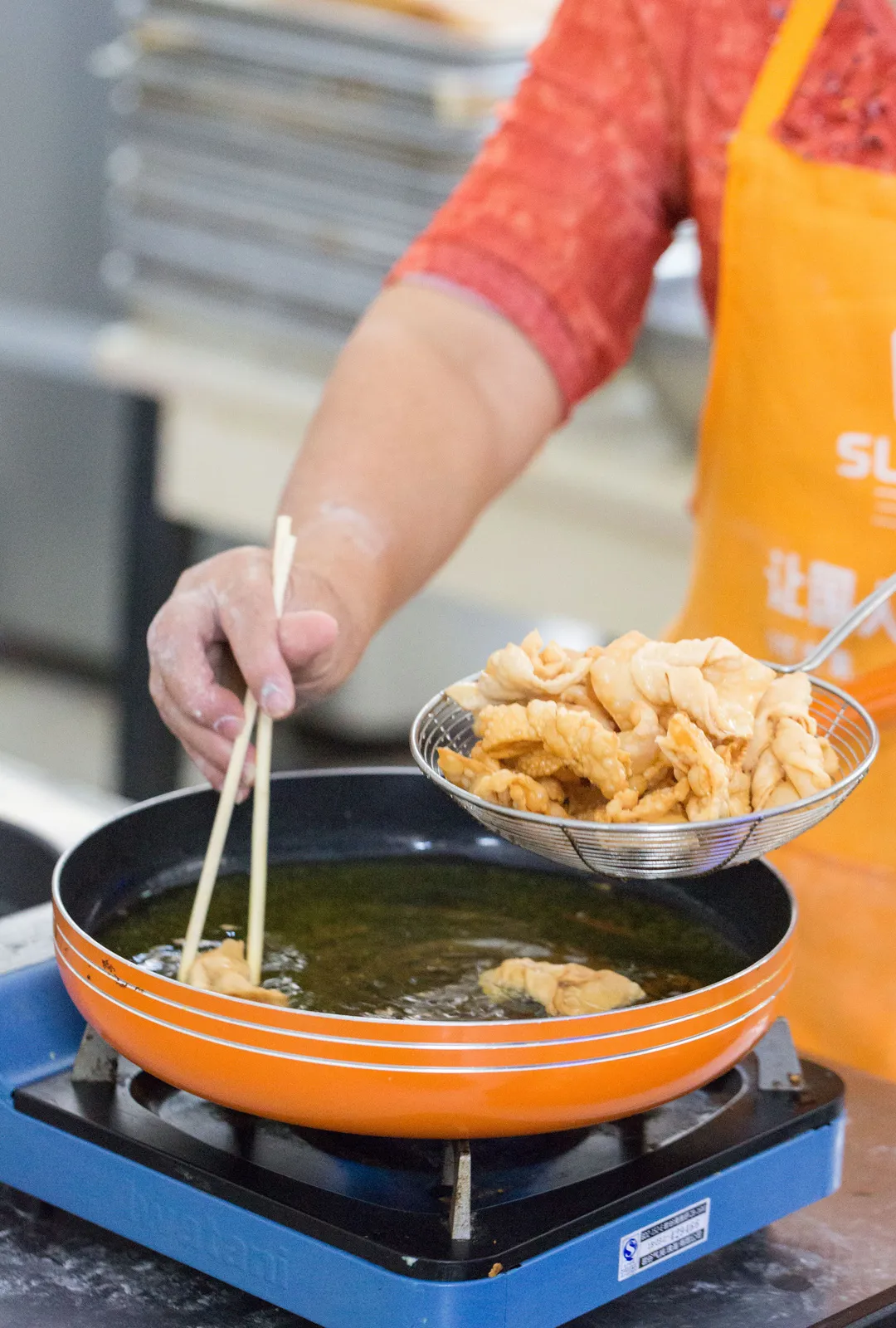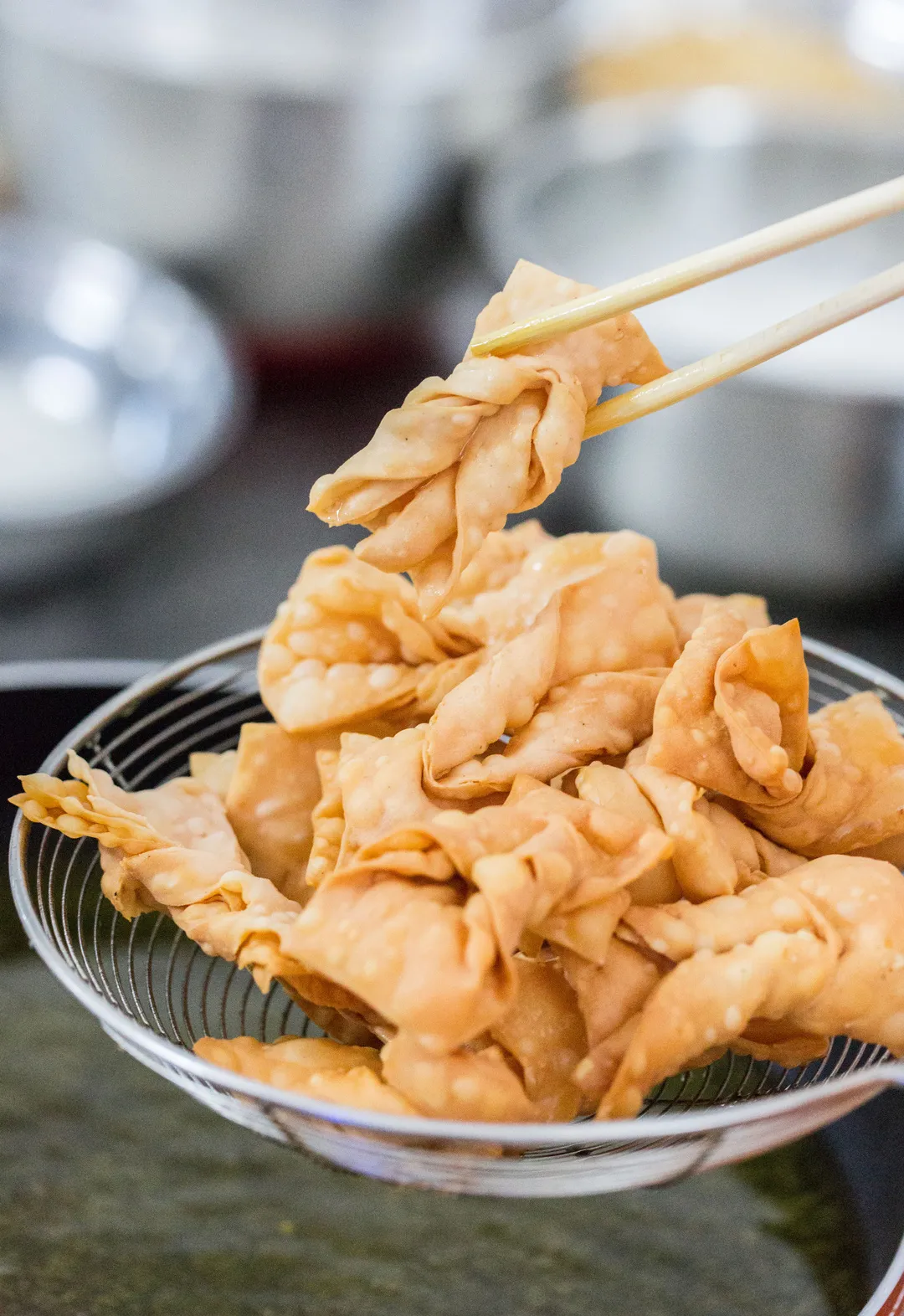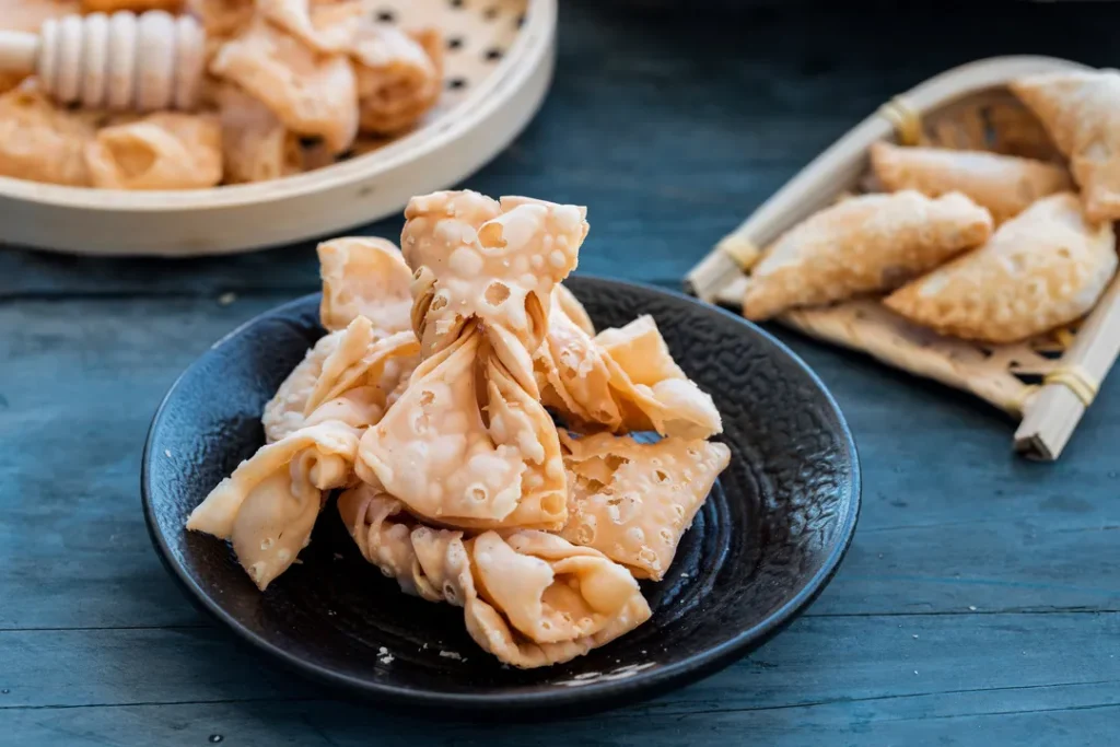 形作り:生地を蝉の翼のように薄く伸ばし、細長く切って真ん中に切れ目を入れ、一端を通してひねります。このひと捻りで形が美しくなるだけでなく、熱が均一に伝わり、サクサクに揚がります。