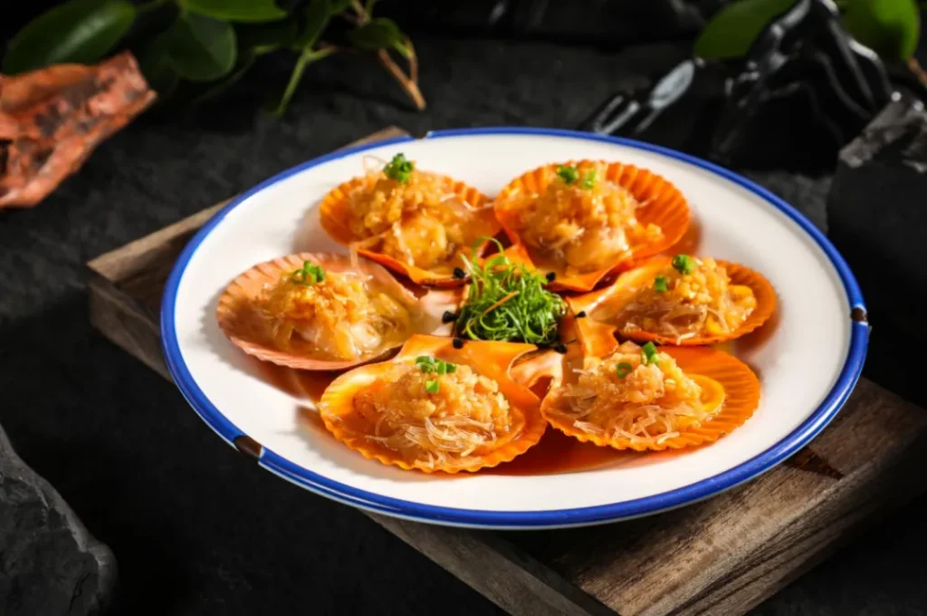 마늘 양념 가리비: 미각을 깨우는 신선한 간식이다. 고추를 섞은 마늘 소스를 가리비 위에 얹어 쪄내면 한입에 육즙이 터지고 감칠맛이 혀끝을 찌른다.