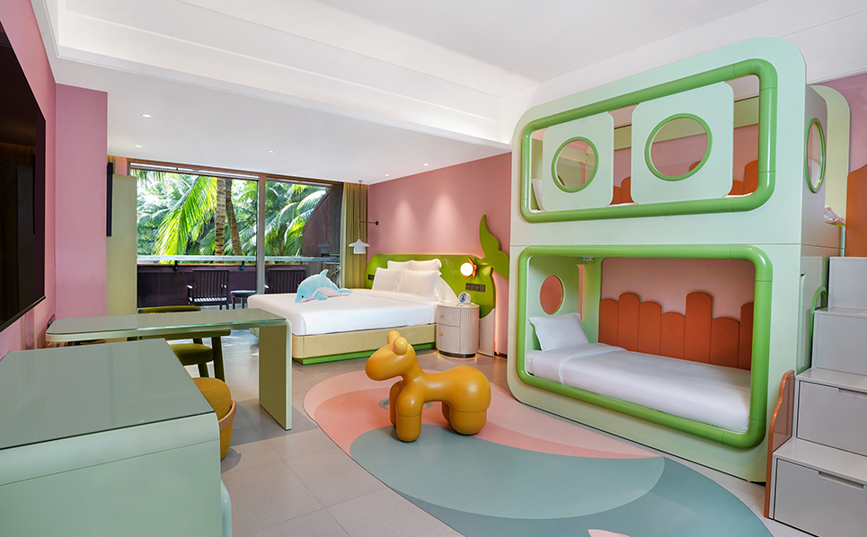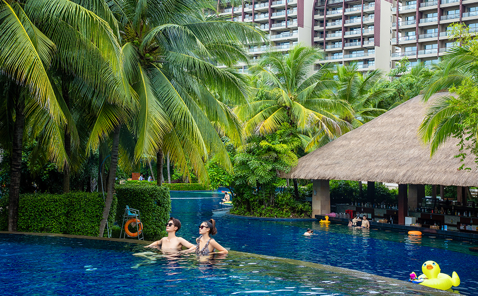 酒店拥有先进多媒体科技系统的多功能会议专属区,1,008平米宽敞明亮的无柱宴会厅,大小不同的12个会议场地,热带花园、泰式水疗中心、24小时健身中心以及包含三个度假泳池及一个恒温泳池在内的四个室外泳池,总面积达2,800平米。同时配有400平米的酷曼星际电玩区域和手工区以及430平米的淘气堡。水上乐园是酒店儿童玩乐项目的一大亮点之一,不仅有适合大朋友的刺激滑梯,还有可供小朋友玩耍的水上小滑梯。酒店室内外康体娱乐专为4至12岁的小朋友们设立了可供玩耍的玩乐区域,也是一个寄教于乐的欢乐天地。室内淘气堡、奇趣攀岩墙、蹦床、彩虹滑梯、酷曼电玩等都是儿童酷玩的新去处。