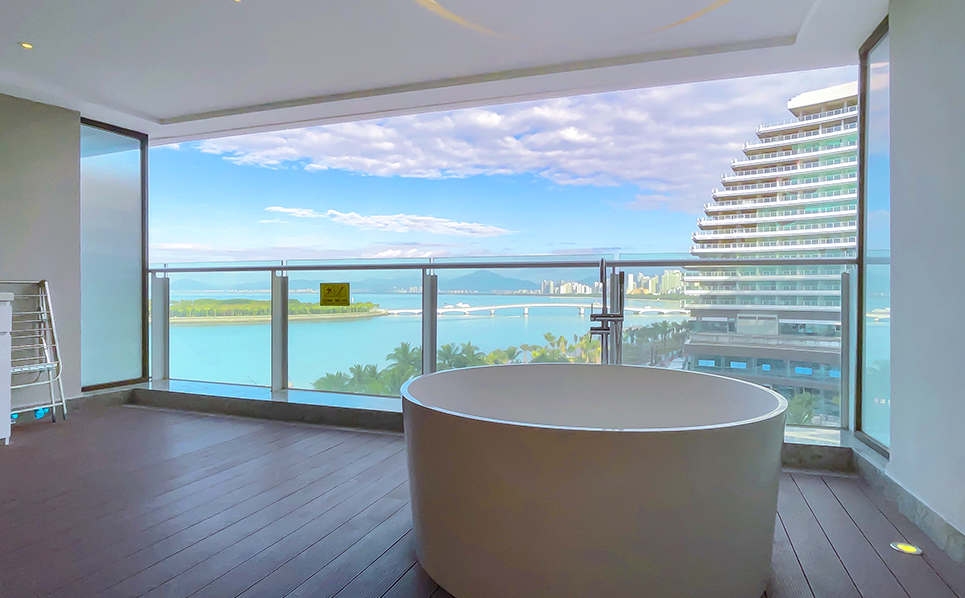 客房均拥有壮阔海景,三亚湾夕阳美景尽收眼底。酒店拥有236间/套客房,面积58㎡至183㎡,房型多样,其中包含以全海景视角为特色的豪华天空之境套房。客房设施配套齐全,均配有观海泡浴缸,厨卫兼顾,贴心配置洗衣设施,精选西门子、汉斯格雅与杜拉维特等优质家电品牌,精梳丝光贡缎床品及阿芙沐浴用品,打造极致便利舒适体验,适合家庭情侣休闲度假。