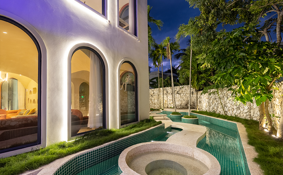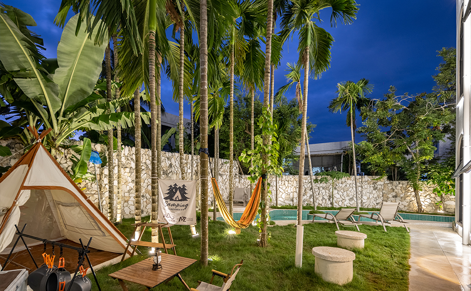 三亚屿静·木言兮店是木言兮系列精心打造高端精品民宿,位于三亚天涯区西岛社区中一巷42号,四面通透,终年沐浴海岛的阳光海风,与自然和谐相融。运用了旅游综合体思维,进行总体规划设计,民宿由4个建筑共同组合,楼高3层,其包含了餐饮,酒吧,戏水池,户外沙土帐篷营地,以及特色空中戏水池;置身于民宿中,人们可以体验到不同风格的设计转变;它是集旅行、度假、餐饮、艺术为一体的奢华民宿。