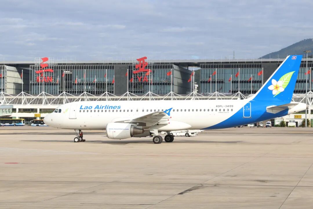 Первый рейс по маршруту Санья ⇌ Вьентьян успешно прибыл в Санью.