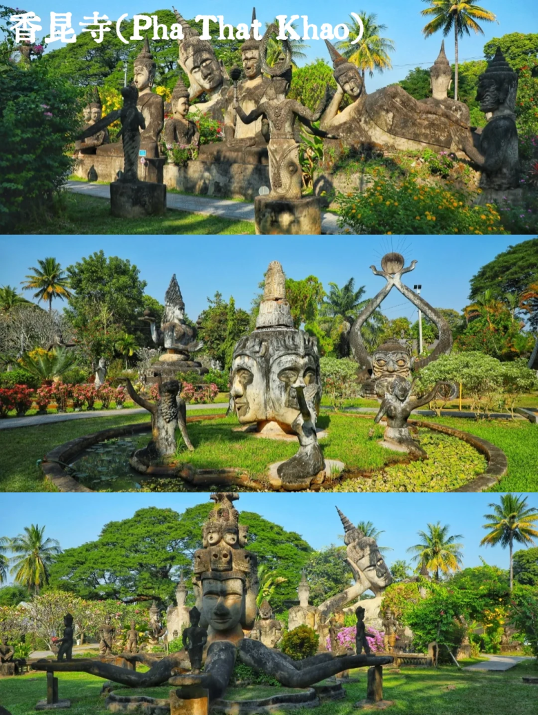 Храм Сиенгкхуан, также известный как Буддийский парк, расположен на берегу реки Меконг. Здесь представлено множество скульптур Будды, сочетающих в себе буддийские и индуистские стили.