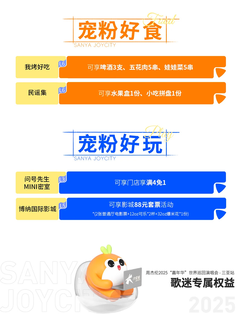 (1) Преимущества для фанатов Джей Чоу 1. Проживая в летнем отеле с 15 по 30 марта, вы можете воспользоваться скидкой в размере 12% на билеты на концерты или связанные с ними ваучеры для фанатов.